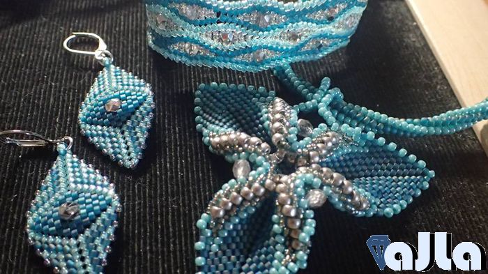 Kombinácia náhrdeníka, náramku a náušníc.