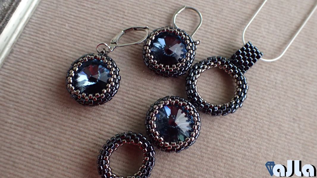 Obšívané rivolky Swarovski Elements v džínsovej farbe. Prívesok je na tenučkej striebornej retiazke.