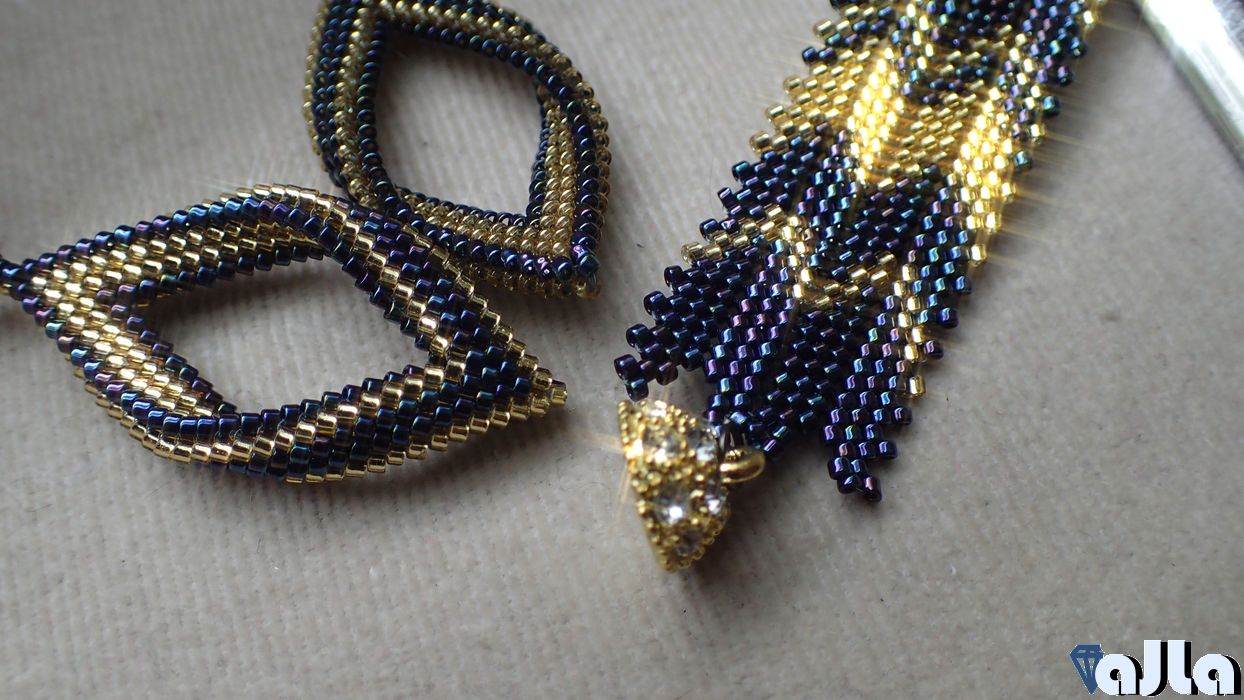 Elegantná kombinácia tmavomodrej so zlatou. Náušnice v štýle TT kosoštvorca a ZIC-ZAC náramok